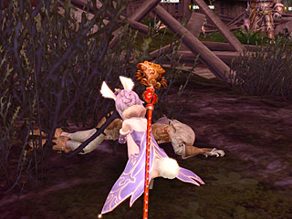 うさぎ(?)と戯れる、うさ耳少女。